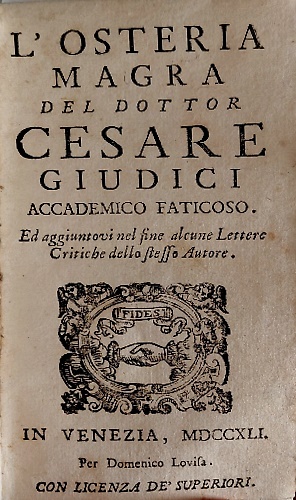 L'Osteria Magra del Dottor Cesare Giudici Accademico Faticoso. Ed aggiuntovi nel fine alcune Lettere Critiche dello stesso Autore.