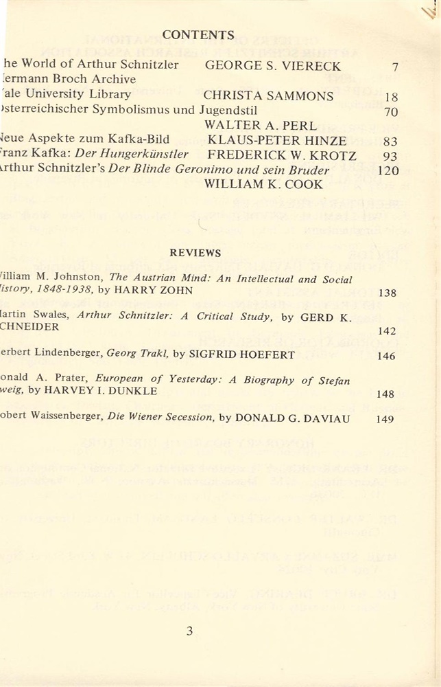 Modern Austrian Literature. Journal of the International Arthur Schnitzler Research Association. Volume 5, Numbers 3/4, 1972.