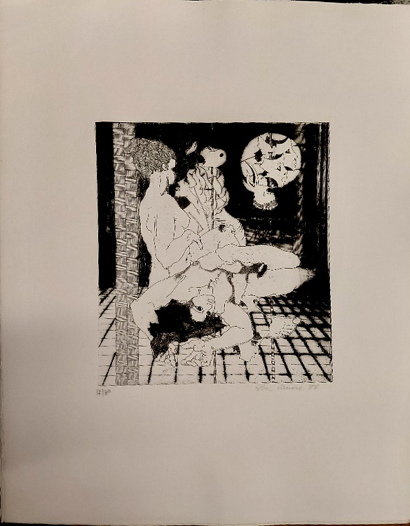 Puntasecca. 1977, cm.11x15, su foglio di cm.50x35, Edizione in 30 esemplari. Nostro 17/30. Firmato a matita dall'autore.