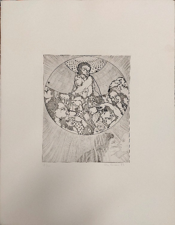 Puntasecca. 1976, cm.19,5x25, su foglio di cm.50x35, Edizione in 30 esemplari. Nostro 14/30 Firmato a matita dall'autore.