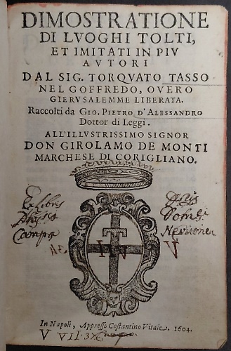 Dimostratione di luoghi tolti, et imitati in piu autori dal sig. Torquato Tasso nel Goffredo, ouero Gierusalemme liberata.