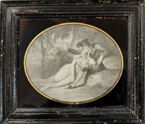 Details: Incisione di cm.15x18 ovale, con cornice in legno cm.22x26,