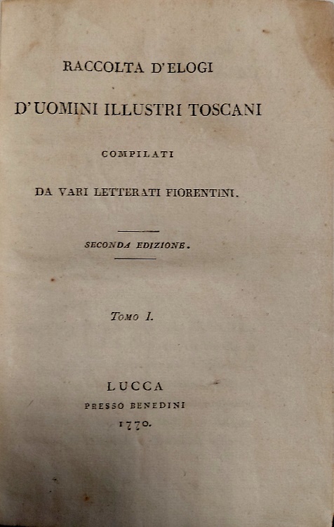 Raccolta d'elogi d'uomini illustri toscani compilati da vari letterati fiorentini.