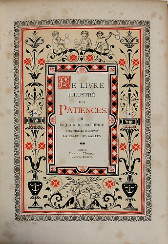 Abstract: Manuale contenente la descrizione di 60 giochi di carte, illustrato da figure in rosso e nero con la disposizione delle carte sul tavolo da gioco.