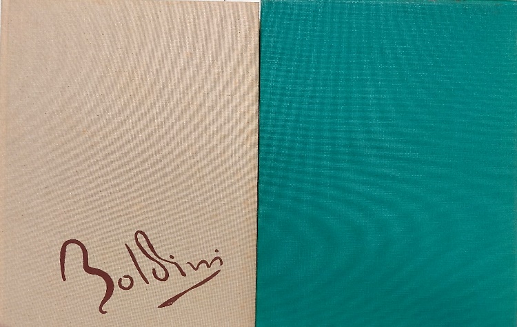 Pistoia, Cassa di Risparmio di Pistoia e Pescia 1981, cm.25x35, pp.377, 322 illustrazioni in bn.e a colori di cui molte a piena pag., legatura editoriale in tutta tela grezza, sovraccop. figurata a colori. Questa monografia illustra particolarmente il periodo toscano di Boldini (con privilegio per le tempere della villa "La Falconiera" a Pistoia, dipinte dall'artista nel 1868 ) ma compie anche un escursus sull'intera opera boldiniana.