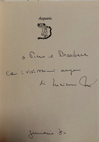 Collana: Coll.Acquario. Edizione limitata in 1000 copie numerate a cura di Vanni Scheiwiller. Esemplare n. 96.