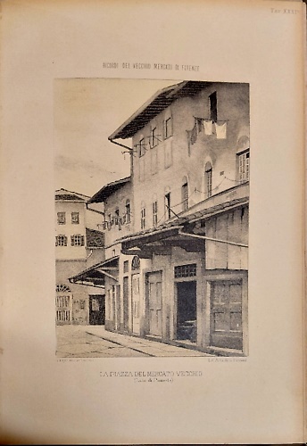Abstract: 40 tavole litografiche del volume, ciascuna protetta da velina, illustrano scorci e scene di vita quotidiana dell'antico quartiere del Mercato Vecchio. Come si sa, l'intera area subì negli ultimi decenni dell'Ottocento una vera rivoluzione, che forse sarebbe più corretto definire "massacro urbanistico". Le tavole, molto belle, costituiscono il nostalgico ma esatto documento di una realtà in via di sparizione.