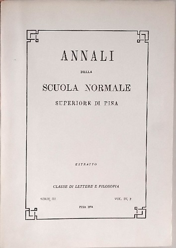 Dettagli: cm.17x24, pp.da 538 a 612,1 con 40 tavole bn. fuori testo, brossura. Estratto da Annali della Scuola Normale Superiore di Pisa. Classe di Lettere e Filosofia.