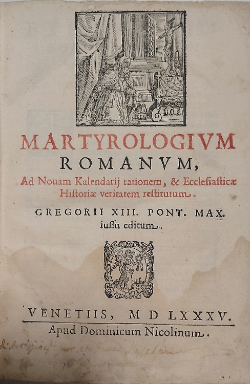 Martyrologium Romanum ad nouam kalendarij rationem, & ecclesiasticae historiae veritatem restitum. Gregori XIII. Pont. Max. iussu editum.