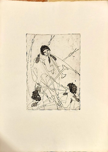 Puntasecca. 1976, cm.21,5x13, su foglio di cm.50x35, Edizione in 18 esemplari. Nostro 13/18. Firmato a matita dall'autore.