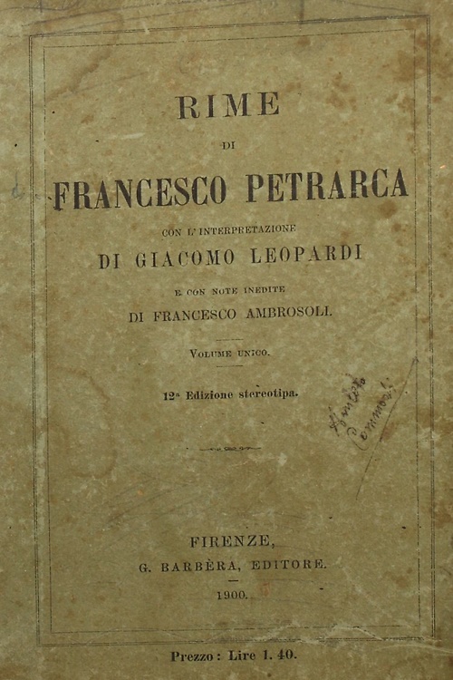 Commentate da Giosue Carducci e Severino Ferrari. Firenze, Sansoni 1949, cm.14x20,5, pp.XLVII,548, rilegatura in mezza tela.
