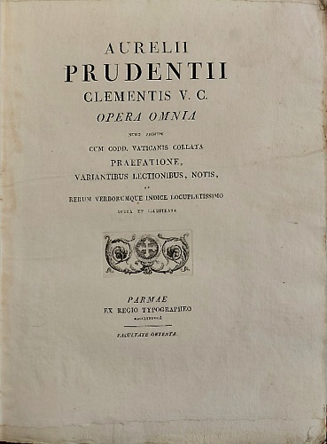 Aurelii prudentii Clementis V.C. Opera omnia nunc primum cum codd. Vaticanis collata praefatione, variantibus lectionibus, notis, ac rerum verborumque indice locupletissimo aucta et illustrata.