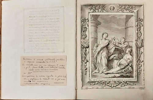 Abstract: In antiporta una tavola allegorica in cornice decorata incisa su rame da Francesco Zucchisu disegno di Bernard Picard, bella vignetta al frontespizio. Grande stemma di Giulio Se Viva, magistrato mantovano. Una tavola con prospetto del sepolcro di Sigismondo Malatesta cui è dedicata l'opera. Due testatine in rame. Notizie della vita dell'autore scritte dal conte Giammaria Mazzuchelli.Il volume presenta delle precise e dettagliate annotazioni a margine con la stessa grafia di un biglietto da visita allegato del Prof. Dott. Pietro Manchisi di Sansepolcro che scrive:--restituisco il volume gentilmente prestatomi e ringrazio vivamente la S.V.E. Le varianti , come mi sono permesso di notare a p.l. furon tratte, senza dubbio, dal Trivulziano 985. Corrispondono le notizie segnate a piedi della stessa pagina le varianti che io già avevo raccolto dal ....