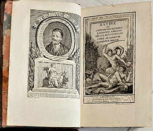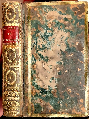 Dettagli: cm.9x15,5, [4], XXIII, [3], 96, [2], 122, [2],3-42, [2], 3-99 legatura in piena pelle, piatti inquadrati in cornice dorata. Carte di guardia marmorizzate. I tre tagli sono colorati di giallo. Stampato su carta vergata. Esemplare chiaro e pulito.