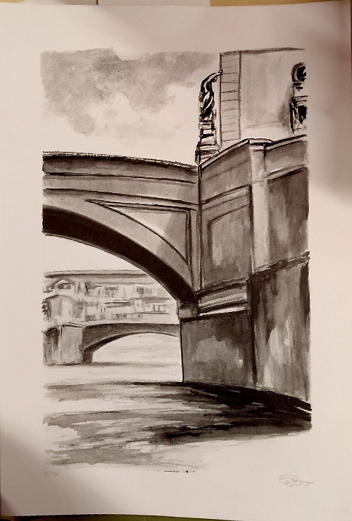 Curatore: Litografie rappresentanti il ponte omonimo di Firenze.