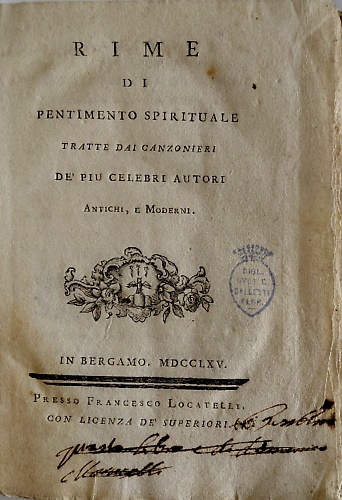 Rime di pentimento spirituale tratte dai canzonieri de' piu celebri autori antichi, e moderni.