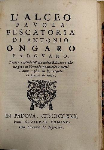 Abstract: L'Alceo favola pescatoria di Antonio Ongaro padovano. Tratta emendatissima dalla edizione che ne fece in Venezia Francesco Ziletti l'anno 1582.