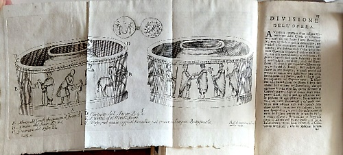 Dettagli: cm.10,5x17, in-12, 94, [1] di Errata, 3 bianche. Con 1 tavola incisa in rame ripiegata e rappresentante il fonte battesimale di P.Paruta descritto dall'Autore e alcune piccole xilografie nel testo. Opera completa e ben conservata. Legatura coeva in piena pergamena rigida con impressioni dorate al dorso. Sguardie in carta marmorizzata, tagli decorati. I tre tagli sono colorati. Esemplare molto pulito. Edizione Rara.