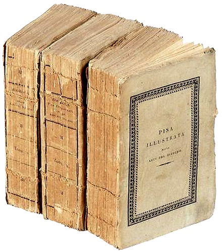 Abstract: Pagine XXIV, 507, [2], 1 bianca con 1 ritratto dell’Autore inciso in rame al frontespizio e 7 tavole calcografiche fuori testo legate a fine volume; XXIII, [1], 560 [1], 1 bianca con 17, di cui 11 numerate 1-11; [2], XVI, 589,[2], 1 bianca con 8 tavole incise in rame fuori testo. Minimi strappetti marginali ad alcune tavole che non intaccano mai l'inciso e alcuni fascicoli allentati, ma esemplare in ottime condizioni, intonso e con forte inchiostratura. Molto chiaro e pulito, in barbe. Legatura in brossura originale editoriale con titoli impressi ai piatti entro cornici xilografiche; titoli impressi ai dorsi. Alcune mancanze di carta lungo i dorsi, assente il dorso del terzo.Seconda edizione, rispetto alla prima corredata di un numero maggiore di tavole incise in rame. Tra queste ricordiamo L’inferno del Camposanto di Pisa di Baccio Baldini, realizzata a partire dall’affresco dell’Inferno secondo Dante dipinto da Andrea Orcagna, e San Girolamo Penitente, variamente attribuito allo stesso Baldini o a Maso Finiguerra (e tratto da un disegno del Pollaiolo). In particolare di queste due tavole, tratte da rami del XV secolo, non si conoscono altre tirature. Le altre tavole sono di Fambrini, Canacci e dello stesso Da Morrona. Particolare pregio è conferito ai volumi da due incisioni del '400 delle quali il Da Morrona possedeva i rami originali e di cui non si conoscono tirature precedenti e che vengono attribuite a Baccio Baldini e a Maso Finiguerra.