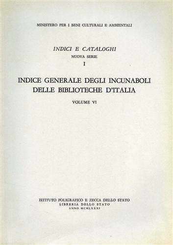 Indice generale degli incunabuli delle biblioteche d'Italia. Vol.VI. Aggiunte, Correzioni, Indici.